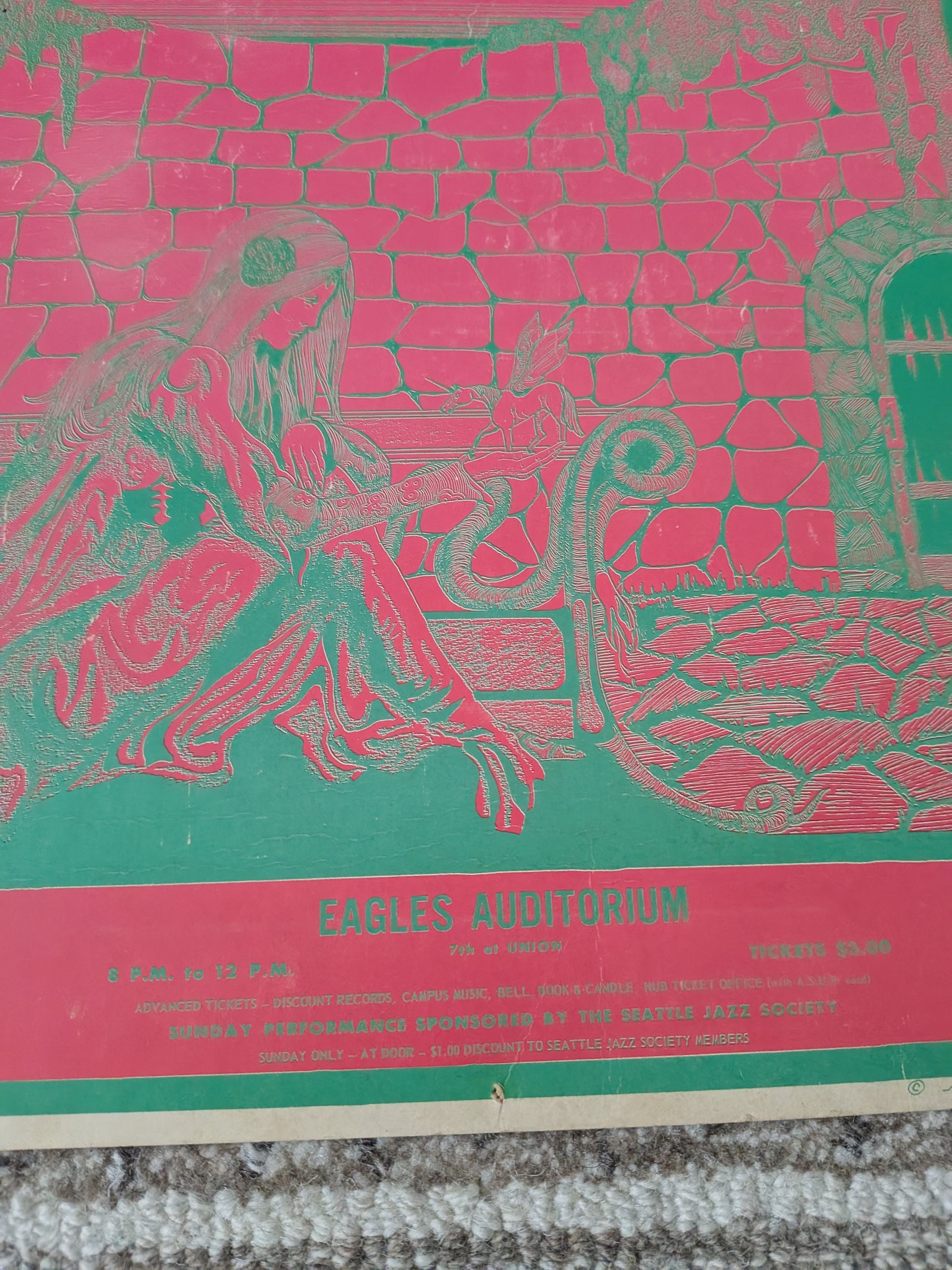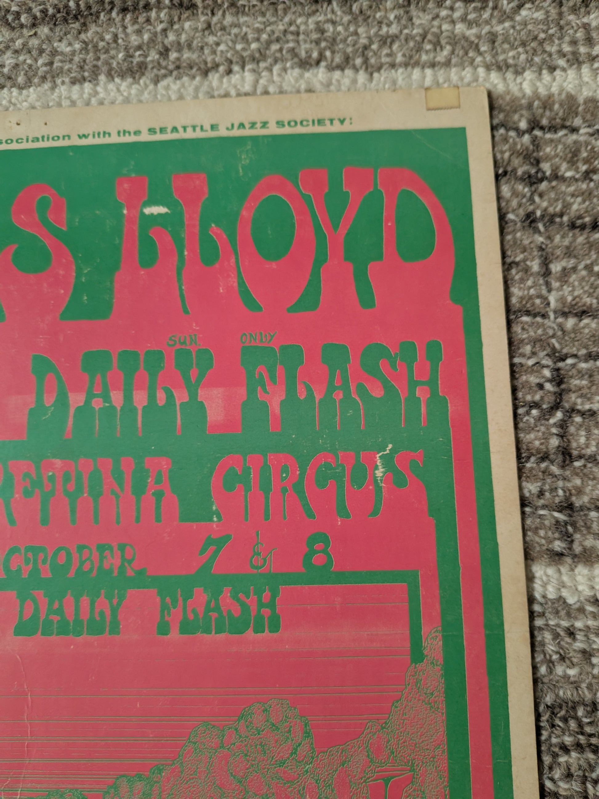 A scarce and visually striking original poster from Seattle’s underground concert scene.