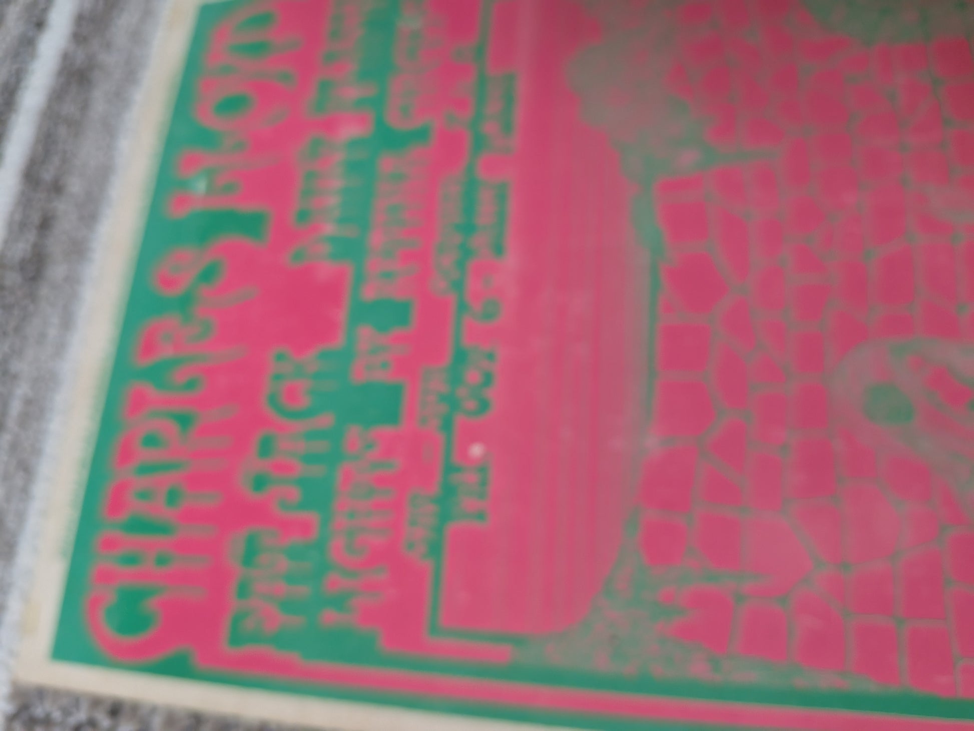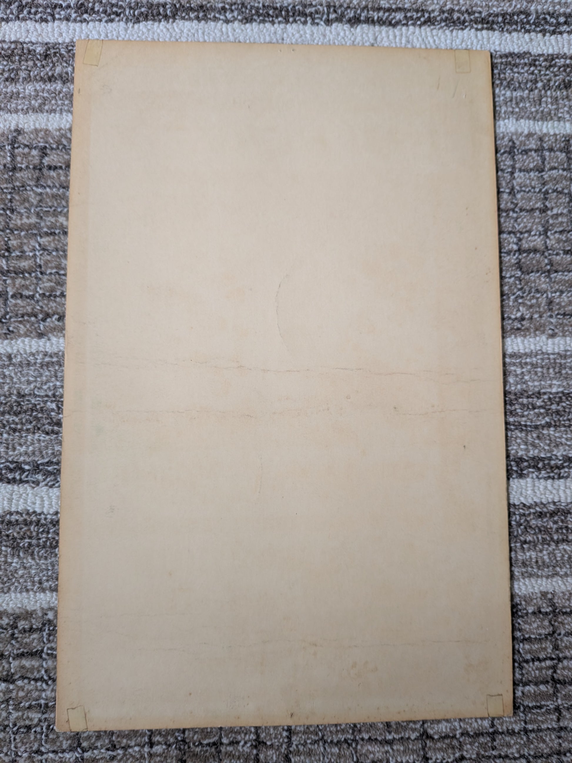 Condition: Good. Noticeable surface wear and scuffing throughout, with light scratching and a few small areas of ink loss in the pink background. Toning and minor foxing around the edges. Tape ghost marks in all four corners on the back from prior mounting. No writing, tears, or restoration.
