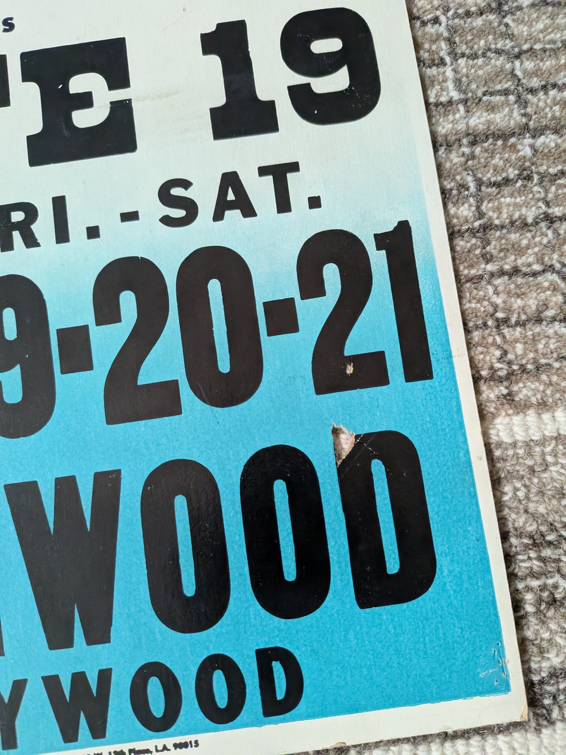 Condition: Very Good – Light edge and corner wear, with small surface abrasions to the black ink in the lettering (see photos). One small chip in upper text area and two tiny hanging holes at the top. No tears, no tape residue, no writing. Bright colors, strong visual impact.